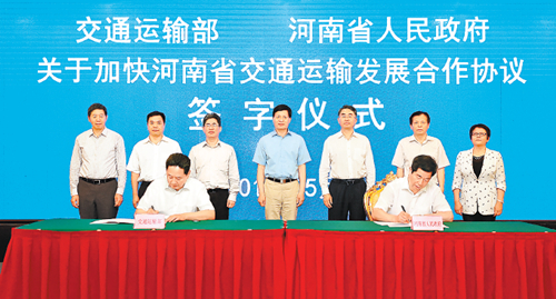 5月22日,河南省人民政府與交通運輸部在鄭州簽署《關于加快河南省交通運輸發展合作協議》。(本報記者 董亮 攝)