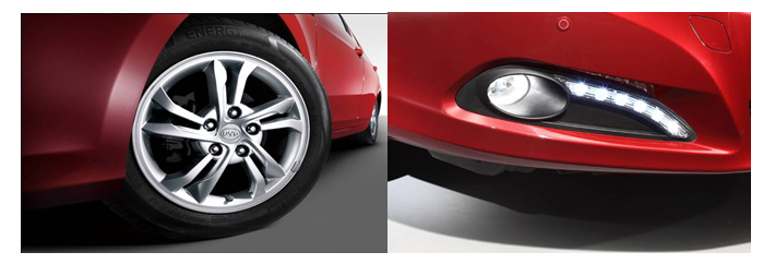 2014款速銳在原來(lái)3H高強(qiáng)度全方位碰撞吸能安全車(chē)身、高強(qiáng)度前后防撞梁、6探頭全方位泊車(chē)?yán)走_(dá)、8安全氣囊(含側(cè)氣簾)、博世第九代ESP車(chē)輛穩(wěn)態(tài)控制系統(tǒng)、彩色顯距倒車(chē)影像監(jiān)視系統(tǒng)等多達(dá)34項(xiàng)的安全配置上,還新增了米其林輪胎,而且新推出的6速自動(dòng)擋車(chē)型還標(biāo)配ESP系統(tǒng)。眾所周知,米其林輪胎是世界頂級(jí)輪胎,抓地力更好、胎噪更小,205/55 R16的輪胎尺寸讓抓地力、舒適性以及燃油經(jīng)濟(jì)性三方面達(dá)到了完美平衡。此外,2014款速銳全系可加裝LED日間行車(chē)燈,這讓車(chē)輛在白天行駛時(shí)更加容易識(shí)別,提升行車(chē)安全系數(shù)。