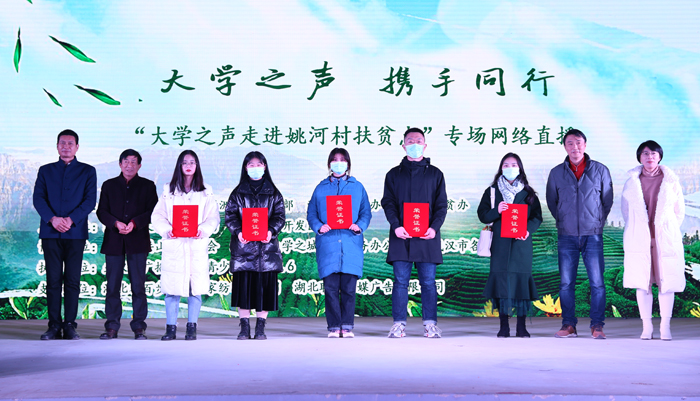 12月10日下午,由洪山區(qū)委宣傳部、新洲區(qū)委宣傳部、洪山區(qū)扶貧辦、新洲區(qū)扶貧辦、洪山區(qū)文化和旅游局、洪山經(jīng)濟(jì)開發(fā)區(qū)管委會(huì)、共青團(tuán)洪山區(qū)委員會(huì)、洪山區(qū)大學(xué)之城建設(shè)服務(wù)辦公室聯(lián)合武漢廣播電視臺(tái)青少廣播共同推出“大學(xué)之聲走進(jìn)姚河村扶貧點(diǎn)”專場(chǎng)網(wǎng)絡(luò)直播活動(dòng),與武漢市近10家高校師生代表30多人走進(jìn)新洲區(qū)舊街街姚河村,見證2020年武漢市精準(zhǔn)扶貧脫貧攻堅(jiān)收官之年的豐碩成果。