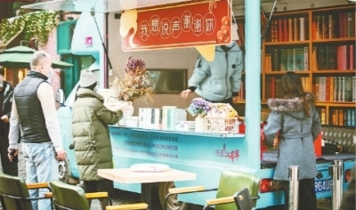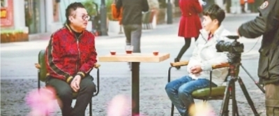 2月3日上午,在黎黃陂路步行街,陽光透過樹叢灑落在青石板上,路兩邊掛起了紅燈籠,車流、人流穿梭不息,透出濃濃年味。馬路側邊,一張桌子、三張凳子、一個移動書房,形成一個露天訪談室,有基層干警、社區工作者、醫護人員、志愿者、餐飲服務業人員依次來到這里,聊工作、述鄉愁,暢聊武漢本土年味。