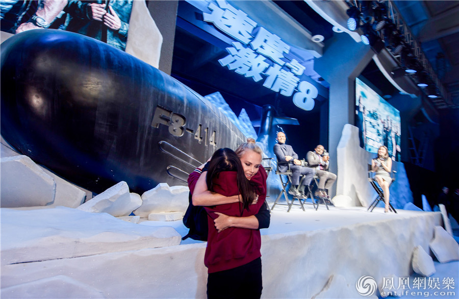 三位主創重現賽車經典場景,共同揮舞手絹,以正宗的“速激”范兒宣布《速度與激情8》的中國之旅正式開賽。