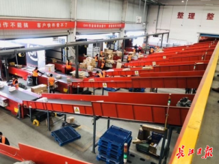 長江網4月12日訊 “嗖……”4月11日,位于新洲陽邏經濟開發區內京東“亞洲一號”倉內,30臺堆垛機以4米/秒速度直奔發貨點,一把“抱”起30公斤礦泉水直奔分揀臺,貨物進入“高速公路”傳送帶,智能掃碼后直接裝載上車,偌大的倉庫空無一人。