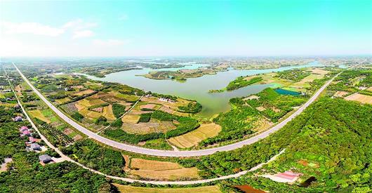 9月 23日,從高空俯視,荊(州)當(陽)旅游公路在青山綠水中蜿蜒。該道 路 全 長50.7公里,是連接宜昌和荊門兩市的一條快速通道,極具景色之美、風物之魅和人文之韻。目前一期工程建設(shè)的26.7公里路段已建成通車。
