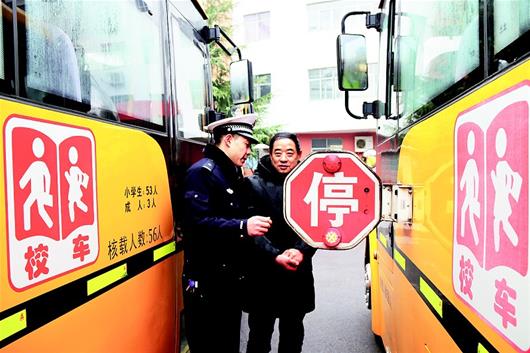 2月19日,枝江市公安局交警大隊正在對校車進行“體檢”。春季開學在即,為了全面預防校車交通事故的發生,保障出行安全,枝江交警聯合教育局等相關部門,分批對全市76輛校車進行全面檢查。