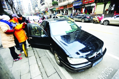 昨日,武昌尚隆路停車(chē)位旁,市民正在補(bǔ)繳停車(chē)費(fèi)。記者苗劍 攝