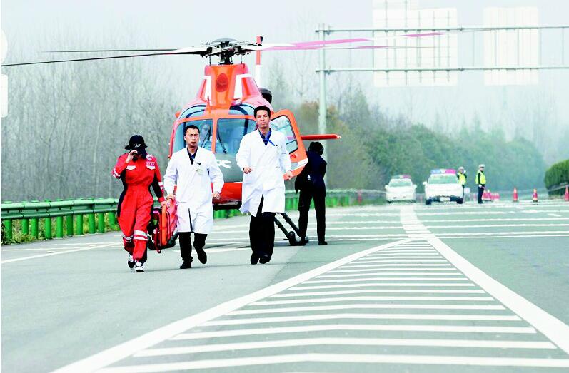 楚天都市報訊(記者吳昌華、通訊員李文宣、徐文匯、實習(xí)生邱楚陽)荒郊野外的高速公路上,如果傷員病情危急、性命攸關(guān),能否動用直升飛機以最快的速度挽救生命?昨日上午,省公安廳高警總隊聯(lián)合救援公司,在繁忙的漢宜高速仙桃路段試演空中急救,并就救援協(xié)作達(dá)成協(xié)議。