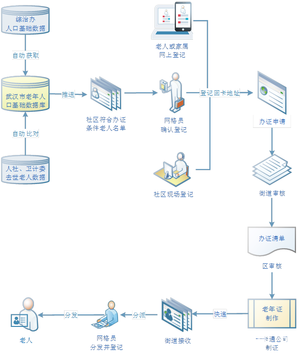 記者了解到,本次老年證辦理改革舉措包括四項。第一是下放老年證辦理權限,將老年證辦理權限下放到區級,由各區民政局(老齡辦)負責組織本轄區老年證辦理工作;第二是完善武漢市養老服務信息平臺,逐步完善武漢市養老服務信息平臺,對接市綜治辦“武漢市社會服務與管理信息系統”以及公安、人力資源和社會保障、衛生計生等部門數據;第三是簡化辦證程序,本市老年證與武漢城市一卡通兩卡合一,采取由社區(村)網格員、老年人或其代辦人登錄依托養老服務信息平臺、老年人或其代辦人直接到所在社區(村)現場登記等三種途徑進行登記;第四是提高辦證效率,由武漢城市一卡通有限公司負責制證,制證時間從60日提速到15個工作日。最后是減免辦證費用,新辦老年證免交工本費,首次補辦老年證工本費由個人和市人民政府各承擔50%,第二次及以后補辦工本費由個人全額繳納。