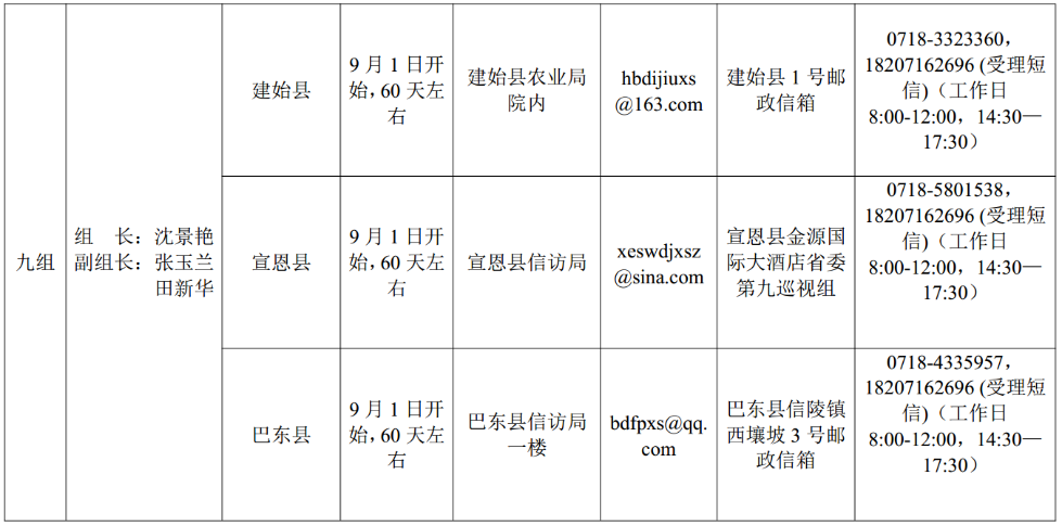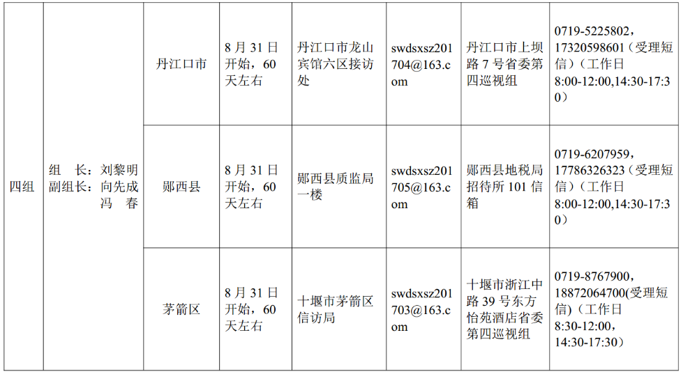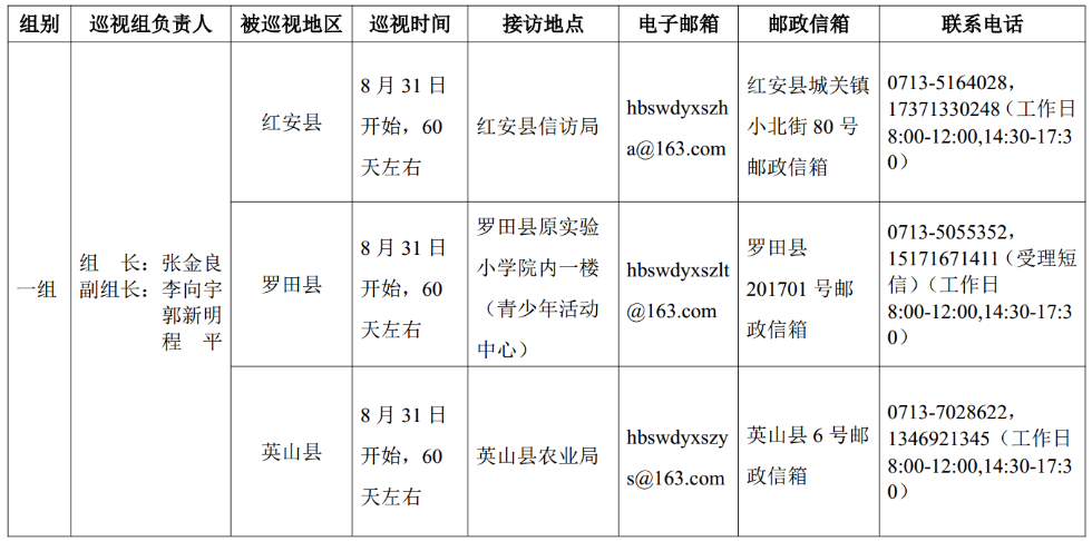 省委巡視組進駐情況一覽表詳見本報“看楚天”手機客戶端。根據巡視工作條例規(guī)定,省委巡視組主要受理反映被巡視縣(市、區(qū))委、政府領導班子及其相關成員,縣(市、區(qū))紀委監(jiān)察局領導班子及其相關成員,鄉(xiāng)鎮(zhèn)(街道)主要負責人問題的來信來訪,重點是關于貫徹落實中央和省委扶貧脫貧工作決策部署不堅決不到位,弄虛作假、扶貧工作不務實,以及對扶貧資金貪污挪用、截留私分、優(yōu)親厚友、虛報冒領、雁過拔毛、擠占掠奪等方面的舉報和反映。其他不屬于巡視受理范圍的信訪問題,按規(guī)定由被巡視單位和有關部門分別處理。