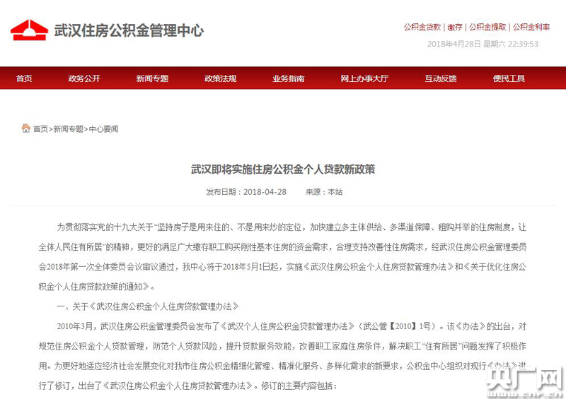 央廣網(wǎng)武漢4月28日消息(記者熊峰)4月28日,記者從武漢住房公積金管理中心獲悉,5月1日起,武漢將實施住房公積金個人貸款新政策,首套房基準貸款額度提高到70萬元,二套房基準貸款額度為50萬元。