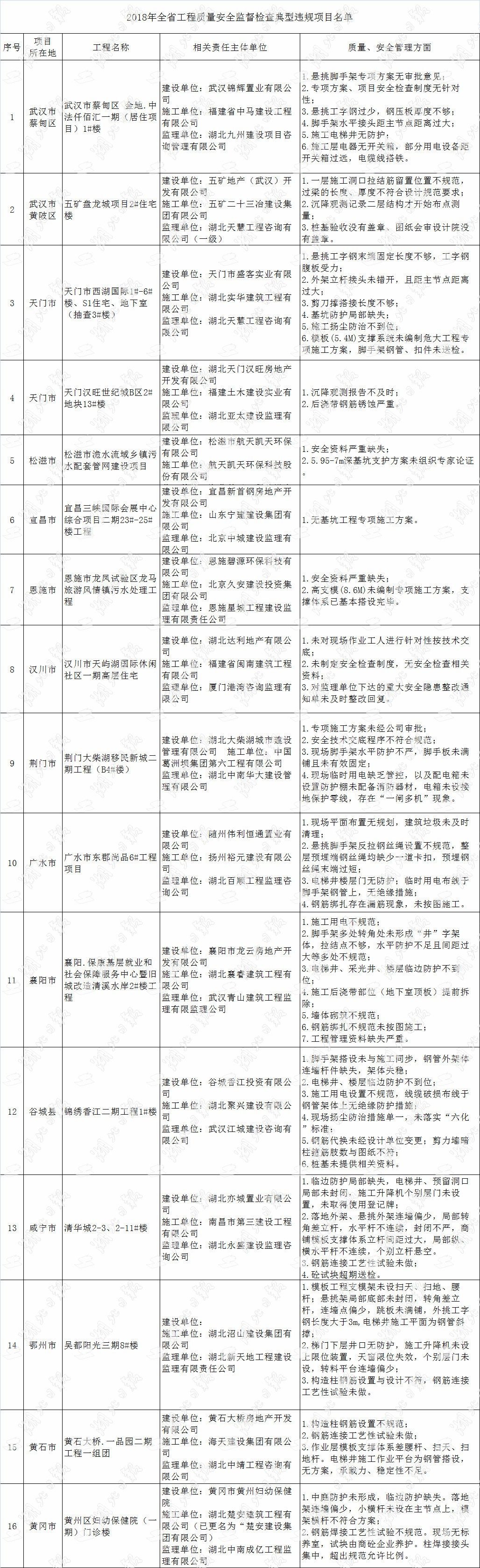 湖北日報訊 (記者彭一葦、通訊員劉姝、魯勇)7月25日,省住建廳通報了2018年全省工程質量安全監督檢查情況,此次共抽查房建工程、鄉鎮生活污水處理工程、易地扶貧搬遷安置工程等92項在建工程,針對發現的突出問題,督查組直接下達執法建議書10份、責令限期改正通知書11份。