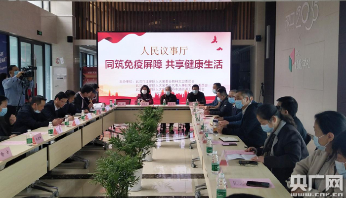 央廣網武漢4月8日消息(實習記者周逸晗 通訊員尚玲 劉培)為紀念武漢重啟一周年,做好常態化疫情防控,推動新冠疫苗接種工作,4月8日,武漢市江岸區人大常委會在“三進”活動中,深入推進黨史學習教育走深走實,以“同筑免疫屏障,共享健康生活”為主題,以“人民議事廳”為載體,充分聽取代表、選民、居民、專家學者的意見,群策群力,共同推進新冠疫苗接種。