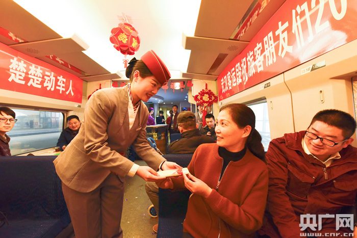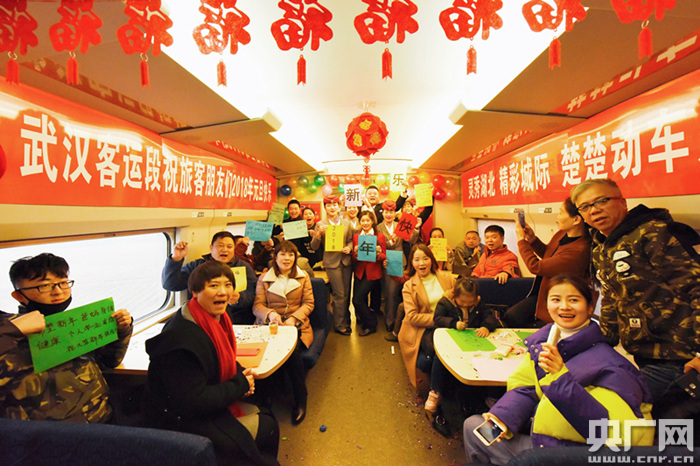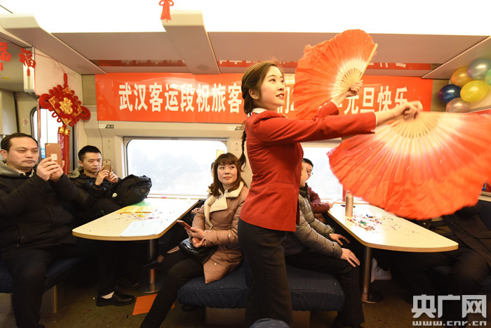 武漢客運段城際動車組車間黨總支書記章瓊表示,武漢客運段一直致力于打造精品文化列車,2018年元旦來臨之際舉辦這個活動是為了讓旅客展望新年,感受祝福,讓旅途更加溫馨溫暖,如同高速發展的中國鐵路一般,駛向美好的未來。