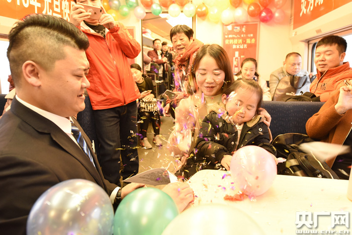 央廣網武漢12月31日消息(記者張毛清 黃炎秋 通訊員蘇杭 宋進軍)“我希望今年我的孩子能考上理想的大學!”“我希望我可以找到一個女朋友!”“我希望我們的國家更加繁榮昌盛!”12月30日上午,在黃岡東開往孝感東的C5342次列車上,武漢客運段舉行了慶元旦聯歡活動,動姐與旅客共同寫下新年愿望,相互祝福,迎接2018年的到來。