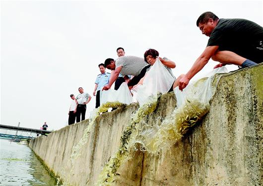 7月17日,在檢察官和漁政執法人員的見證下,由犯罪嫌疑人馬某出資購買的30萬尾魚苗投放到襄陽市漢江張灣段水域。