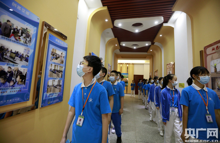 圖為:2020年8月28日,在湖北省武漢市楚才中學(xué)文化長(zhǎng)廊內(nèi),七年級(jí)學(xué)生正接受銜接教育。(央廣網(wǎng)發(fā) 通訊員王方攝)