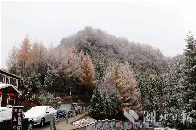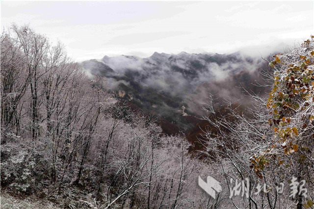 11月6日,在保康縣馬橋鎮堯治河村梨花山拍攝的雪景。當日,受冷空氣影響,保康縣馬橋鎮、龍坪鎮等海拔1200米以上的高山地區降下今年入秋以來第一場雪。(視界網楊韜張強攝)