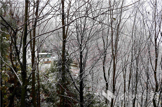 11月6日,在?悼h馬橋鎮堯治河村梨花山拍攝的雪景。當日,受冷空氣影響,?悼h馬橋鎮、龍坪鎮等海拔1200米以上的高山地區降下今年入秋以來第一場雪。(視界網楊韜張強攝)