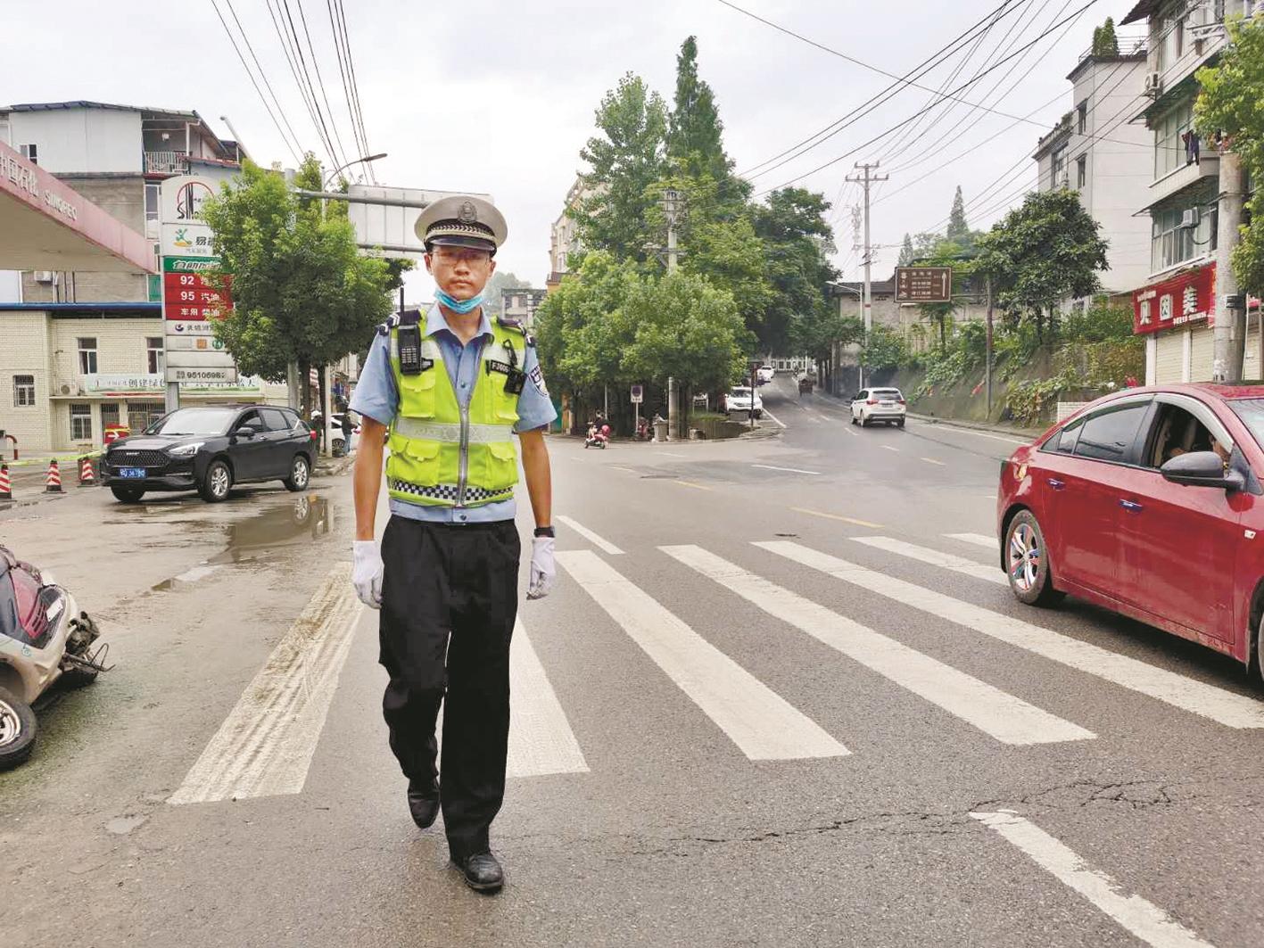 “他日常工作就是街面執勤巡邏,小伙很敬業。”談起康弘,六角亭交警中隊中隊長岳艷對他平時的工作非常肯定。1999年出生的康弘很靦腆,參加工作有兩年了,葉挺路是他日常巡邏的區域。“前幾次發大水,我看見他經常都是光著腳在附近巡邏,維持秩序。”熱心市民熊女士向記者說道。