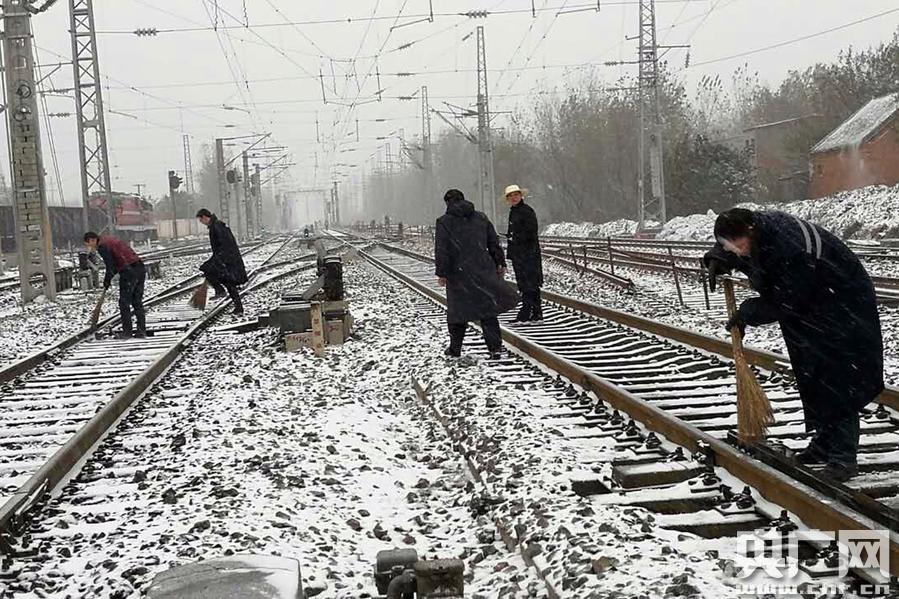 央廣網(wǎng)武漢11月23日消息(記者張毛清 通訊員劉衛(wèi)兵 郭松)11月22日,我國中部遭遇今年入冬以來的第一場強降雪,特別是黃淮地區(qū)普降中到大雪。武漢鐵路局重點電煤運輸車站——平頂山東站立即啟動雨雪天氣應(yīng)急預(yù)案,組織工作人員走上線路掃雪除冰,確保電煤列車正點開出。