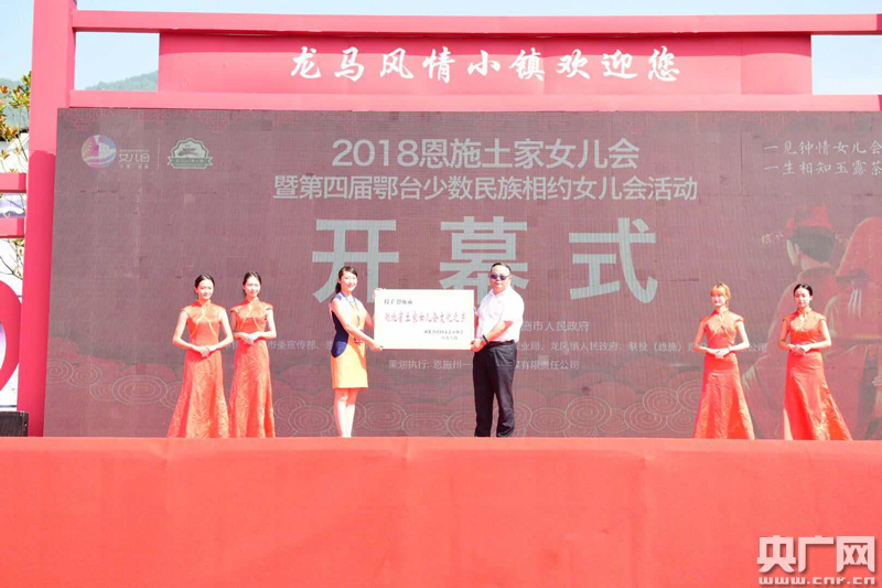 湖北省文聯(lián)黨組成員、副主席肖偉池現(xiàn)場授予恩施市“湖北省土家女兒會文化之鄉(xiāng)”的稱號。