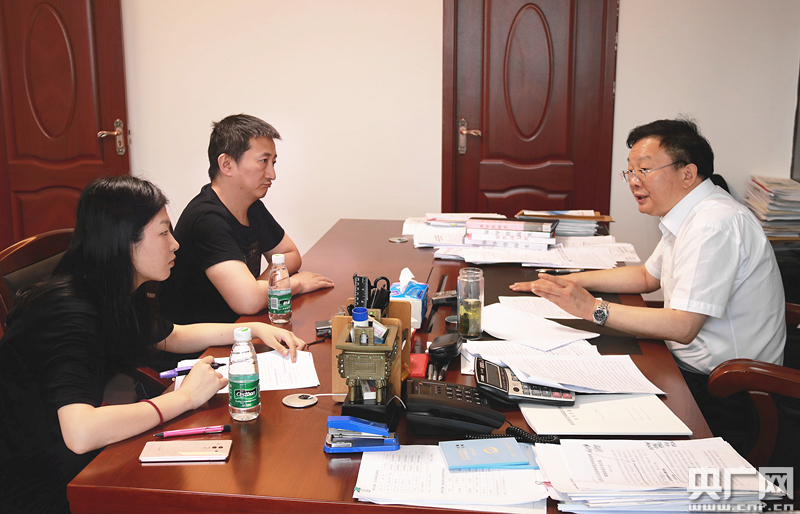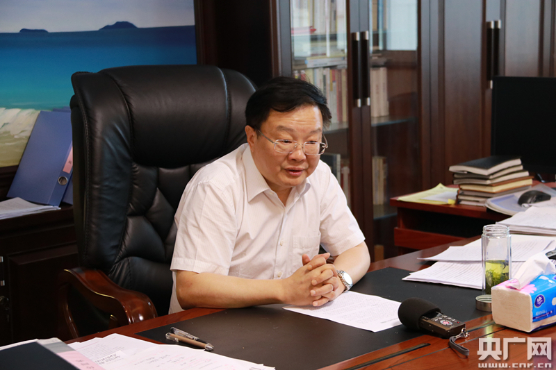 圖為武漢市科技成果轉化局常務副局長、武漢市科技局局長李記澤正在接受采訪 央廣網記者黃炎秋 攝