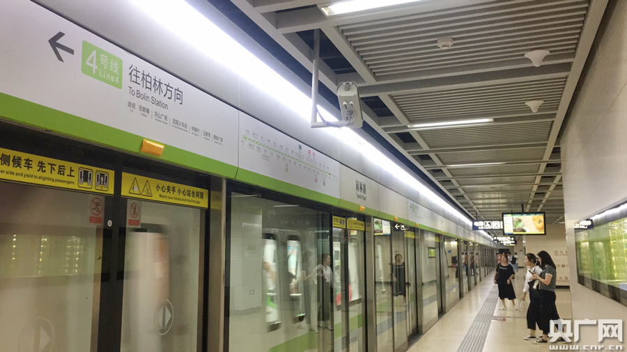 圖為:武漢地鐵4號線已更換“往柏林方向”線路指示。央廣網(wǎng)記者熊峰 攝