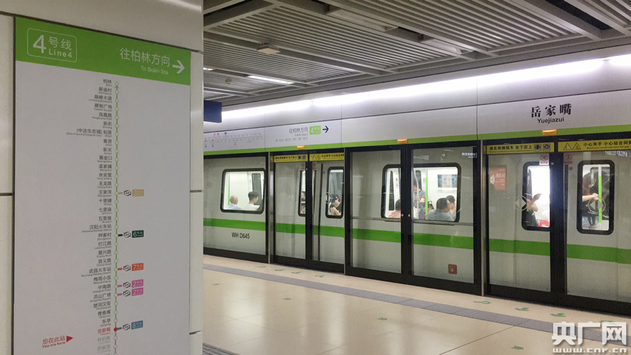 圖為:武漢地鐵4號線岳家嘴站已更換全新線路圖。央廣網(wǎng)記者熊峰 攝