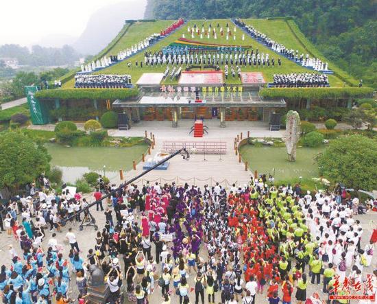 8月21日上午,2017黃龍音樂季·國際合唱藝術周在張家界黃龍洞哈利路亞音樂廳屋頂拉開帷幕,來自全國各地的112支合唱團參賽。記者 徐行 攝