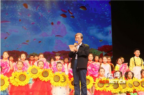 李少白老師是國內知名的兒童文學作家,瀟湘詩會創始人之一。在兒童文學園地辛勤耕耘50多年,創作了大量膾炙人口的童詩、童謠、童話和兒童故事,是中國童詩童謠的標志性人物。本次朗誦會精選了李少白創作的近三十首作品,分旗幟飄飄、童心如花、童夢飛揚、中華少年等十個章節,以童詩朗誦、親子誦讀、童歌演唱等形式,向全場觀眾們呈現了一個別開生面的童真世界。