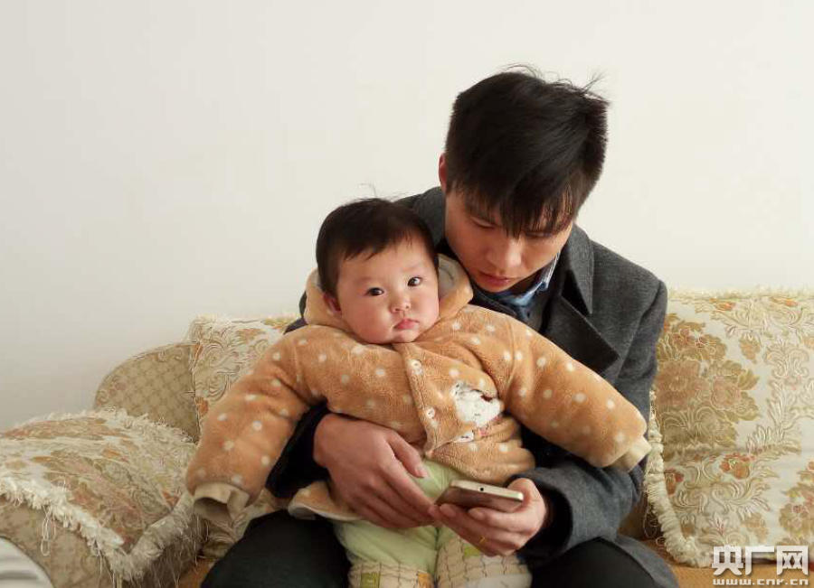 央廣網株洲2月3日消息(記者鄧文輝 通訊員鄢偉華 龍堅 譚丁松)剛剛過去的2016年,對于株洲機務段1991年出生的火車司機譚住寶來說,可謂愛情事業雙豐收:這一年,他結婚、生子,完成了從單身漢到人夫、人父身份的轉變;11月份,他還拿到了火車司機駕駛證,是同批入路者中第一人。2017年春運,譚住寶更是再嘗“頭啖湯”----擔任火車司機后第一次在除夕夜值乘。除夕上午9時,正在在家陪女兒的譚住寶接到了當晚值乘T82次旅客列車的工作短信,T82次衡陽站凌晨零點37分開車,這意味著他今年除夕夜不能在家過,而且必須在下午六點前趕到單位備班。 譚住寶在家帶女兒時,收到工作短信 -