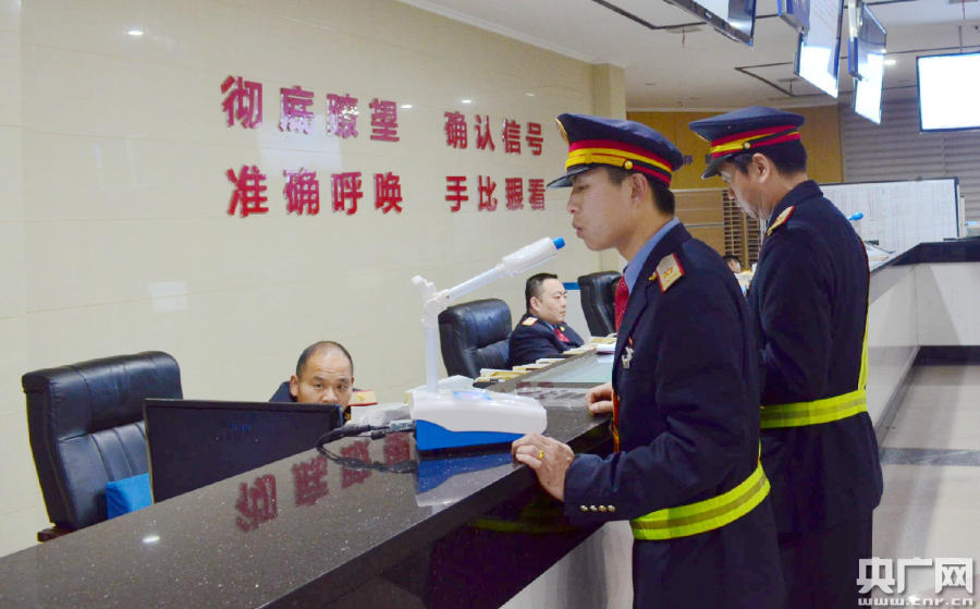 22點40分,睡足了四個多小時的譚住寶來到出乘室做出乘前的最好準備:輸入指紋、酒精測試、核對揭示、IC卡反讀,整個作業過程譚住寶顯得特別認真。 譚住寶做出乘前的準備 -