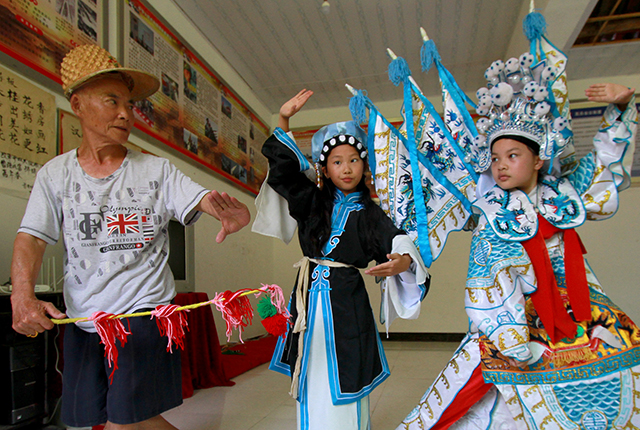 7月16日,花垣縣邊城鎮(zhèn)長老墳村漢劇傳習所,孩子們在楊勝先老人的指導下學習漢劇。該村在2016年成立“邊城漢劇傳習所”,由漢劇“非遺”傳承人楊勝先老人義務(wù)執(zhí)教,讓更多的年輕人學習、傳承漢劇。龍恩澤 攝