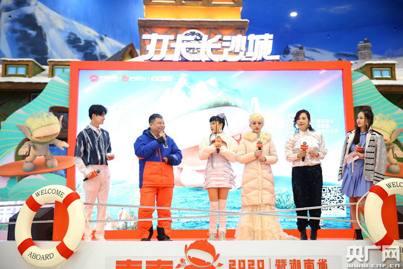 央廣網長沙7月27日消息(記者姜文婧 文湘霖)七月的長沙天氣熱情似火,位于湖南湘江新區核心片區大王山的湘江歡樂城內卻白雪皚皚,冰爽十足。懸浮于百米深坑之上的室內冰雪主題樂園實時溫度零下5攝氏度。7月26日下午,2020“青春芒果節 打卡長沙城”快閃活動在湘江歡樂城舉行,“乘風破浪”的小姐姐們在冰雪中活力起舞,拉開了第二站的活動帷幕。
