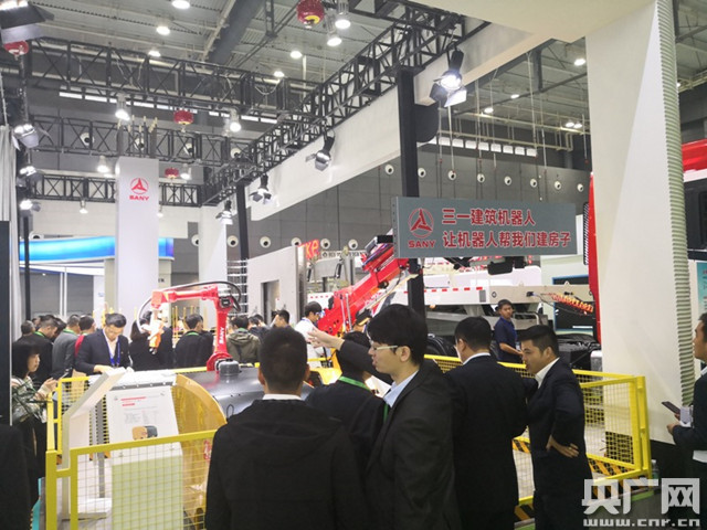 三一筑工展出的建筑機器人吸引了不少專業觀眾(央廣網記者 姜文婧 攝)
