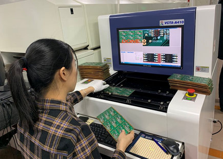 貼片車間工人仔細檢查剛出產的主板(央廣網記者 馬文靜 攝)