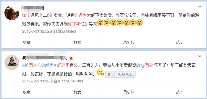 如果這些遭遇還算個(gè)例,那么最近有些淘寶賣(mài)家發(fā)出的大招,則深深地影響到了一大批消費(fèi)者。買(mǎi)家在淘寶上給出的好評(píng)率低于一定數(shù)值,就有可能被淘寶賣(mài)家拒絕下單。以后,你還敢給差評(píng)嗎?