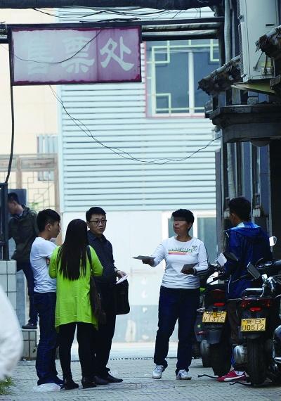 德云社劇場售票窗口前,“黃!保ㄓ乙挥叶┱蛴^眾薦票 攝/法制晚報記者 劉暢