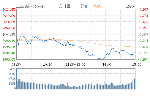 滬指跌0.68%失守2000點 成交量創14個月來新低