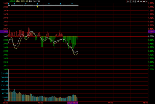 新華網消息 周五兩市低開,后在石化雙雄帶動下滬指一路飄紅,隨后中國石化回調,滬指飄綠,圍繞2050點多空雙方展開火拼。深成指開盤后振蕩走高,網絡信息安全概念出現大幅上漲,多只個股一度漲停。截至午盤,滬指報2027.88點,下跌19.47點,跌幅0.95%,成交499.74億元;深成指報7219.30點,上漲30.56點,漲幅0.43%,成交756.62億元;創(chuàng)業(yè)板指報1397.11點,下跌17.55點,漲幅1.24%,成交170.23億元。