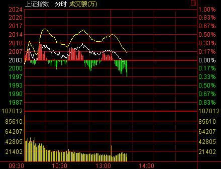 滬指午后跌破2000點(diǎn) 銀行、石油等權(quán)重飄綠