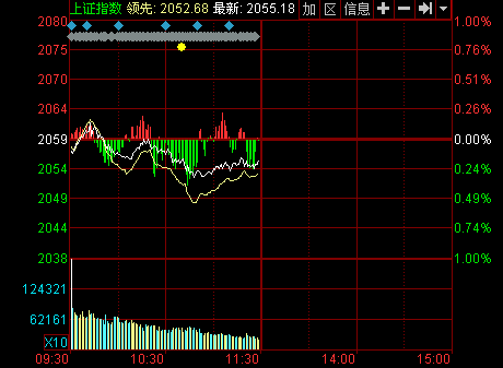 截至午盤,滬指報(bào)2055.45點(diǎn),下跌3.61點(diǎn),跌幅0.18%,成交418.78億元;深成指報(bào)7275.02點(diǎn),上漲15.58點(diǎn),漲幅0.21%,成交528.73億元;創(chuàng)業(yè)板指報(bào)1290.80點(diǎn),下跌15.12點(diǎn),跌幅1.16 %,成交112.98億元。