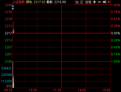 新華網消息 今日滬深兩市開盤漲跌互現,滬指報2216.66點,下跌0.81點,跌幅0.04%,成交10.81億元;深成指報7990.00點,下跌5.50點,跌幅0.07%,成交9.49億元;創業板指報1365.18點,下跌0.56點,跌幅0.04%,成交0.86億元。