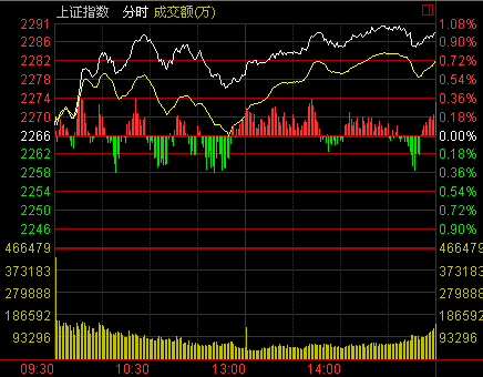 新華網消息 今日兩市高開,早盤小幅沖高后維持震蕩走勢,市場交投持續活躍,成交量溫和放大,權重藍籌再成指數上漲的主力。午后滬指創出反彈新高2290.55點,最終報收四連陽。
