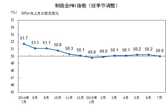 7月官方制造業(yè)PMI為50.0 不及預(yù)期