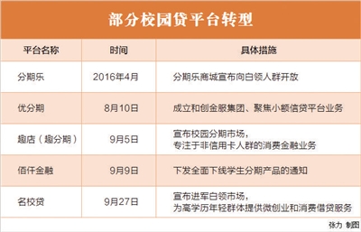 今年以來,校園網貸風險逐漸浮出水面,教育部、銀監會等部門也陸續出臺了一系列管理辦法,加強對校園貸的風險防范。在逐漸趨嚴的監管環境下,不少校園貸、校園分期平臺萌生退意,紛紛宣布業務轉型,進軍非校園市場。