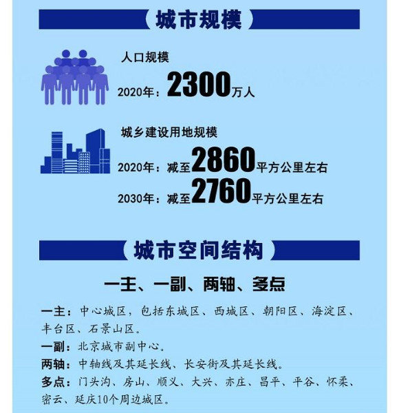 從3年前開始,新一版北京城市總體規劃就進入了編制階段。市規劃國土委相關負責人表示,此次北京城市總體規劃提出落實城市戰略定位,明確發展目標和城市規模,是站在新的歷史起點上,對黨中央、國務院重大戰略部署和做好首都各項工作指示的具體落實,凝聚了新中國成立以來的60多年北京城市發展實踐經驗的總結,體現了重大轉折期首都發展的新理念、新要求、新期待。