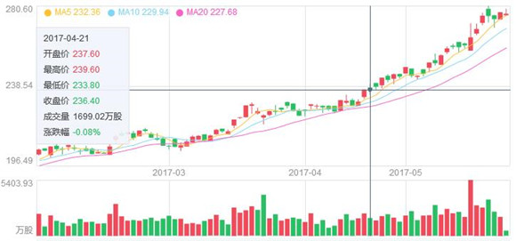 在股價方面,5月25日,騰訊控股(00700.HK)開盤價273.4港元,報收于277.2。而在5月23日,盤中交易最高價達(dá)280.6港元,再創(chuàng)新高。僅僅在2017年的交易中,騰訊已有18次創(chuàng)下盤中交易價格的歷史新高,而這還不到半年時間。今年以來騰訊控股(00700.HK)累計漲幅45.93%,即使是在五月份也有13.43%的漲幅。目前為止騰訊控股股價為276.4港元,市值2.61萬億港元。從股價的走勢來看,騰訊控股完全是單邊上漲,一貫長虹,這正是騰訊業(yè)績蒸蒸日上的表現(xiàn)。