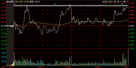 今日,美的集團(tuán)早盤(pán)迅速拉升一度漲1%,隨后有所下挫,臨近午盤(pán)時(shí)一度拉升至當(dāng)日最高點(diǎn)。該消息傳出后快速下行,保持低位徘徊,截至收盤(pán)美的集團(tuán)漲0.89%,報(bào)43.16元/股。