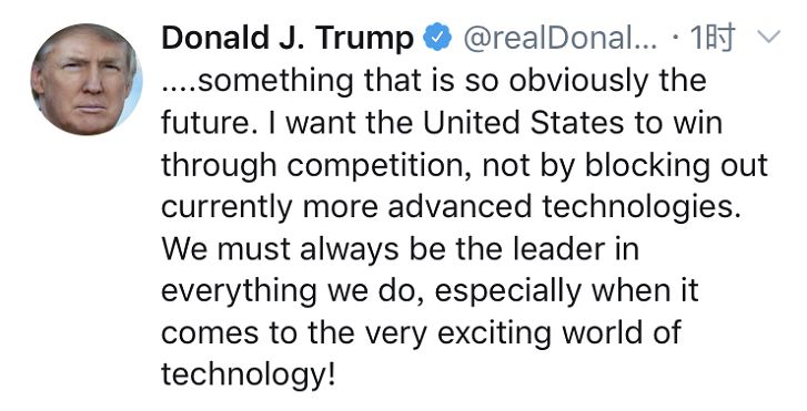 請注意特朗普的這句話:我希望美國公司能夠通過競爭去獲勝,而不是靠封殺當下更先進的技術。