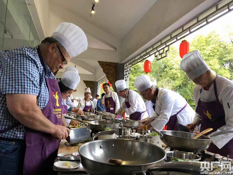 在川菜博物館內學習川菜制作的外國游客(中央廣播電視總臺央廣記者 張慧娟 攝)